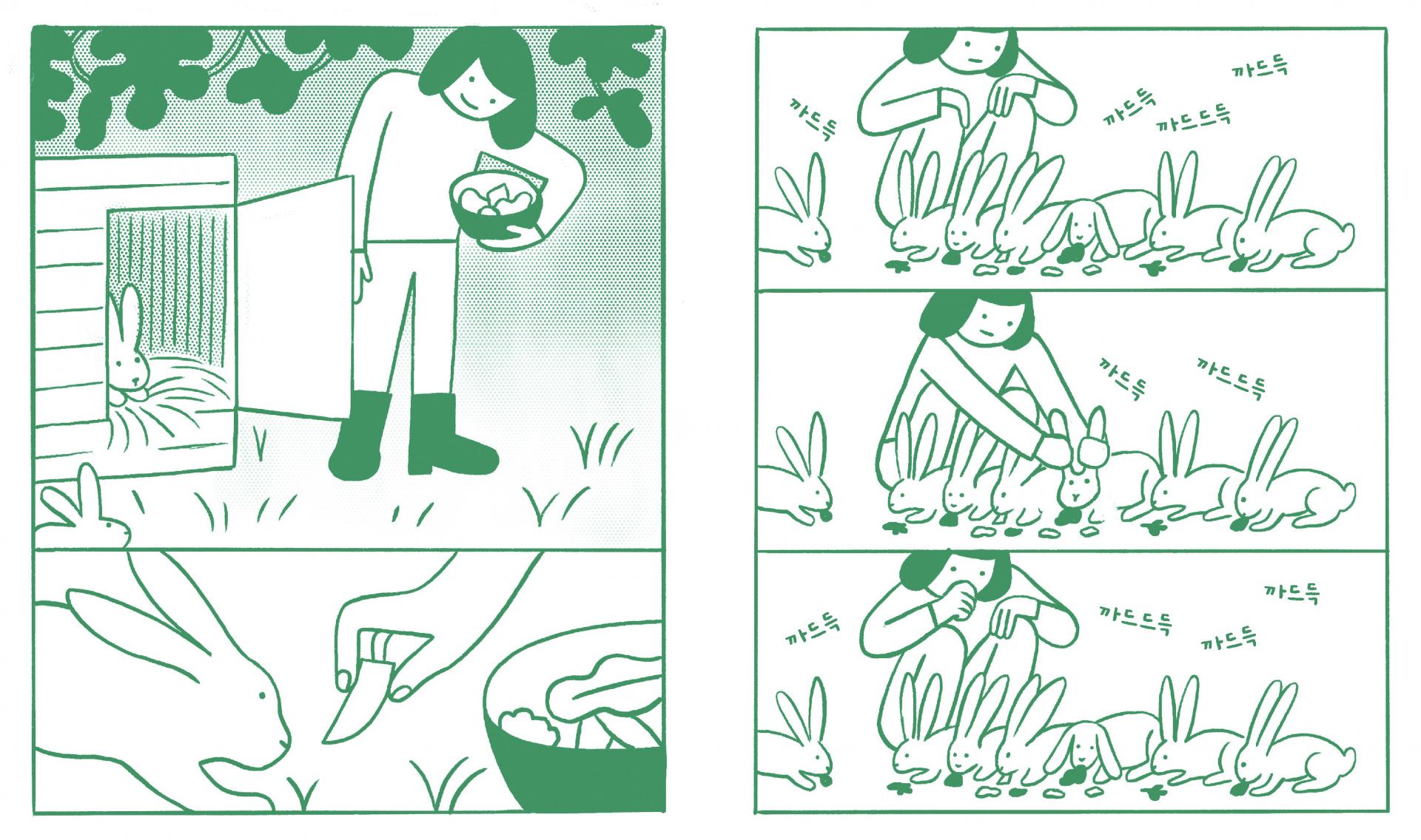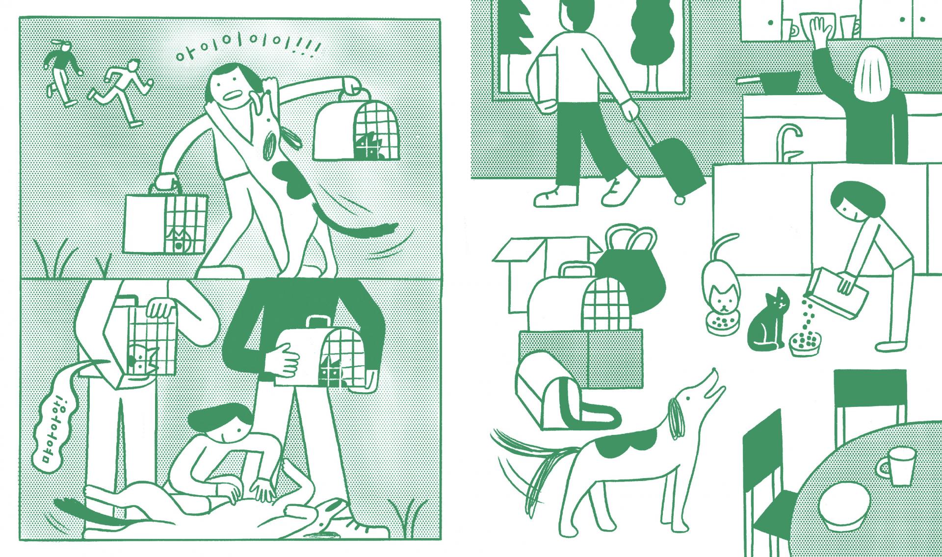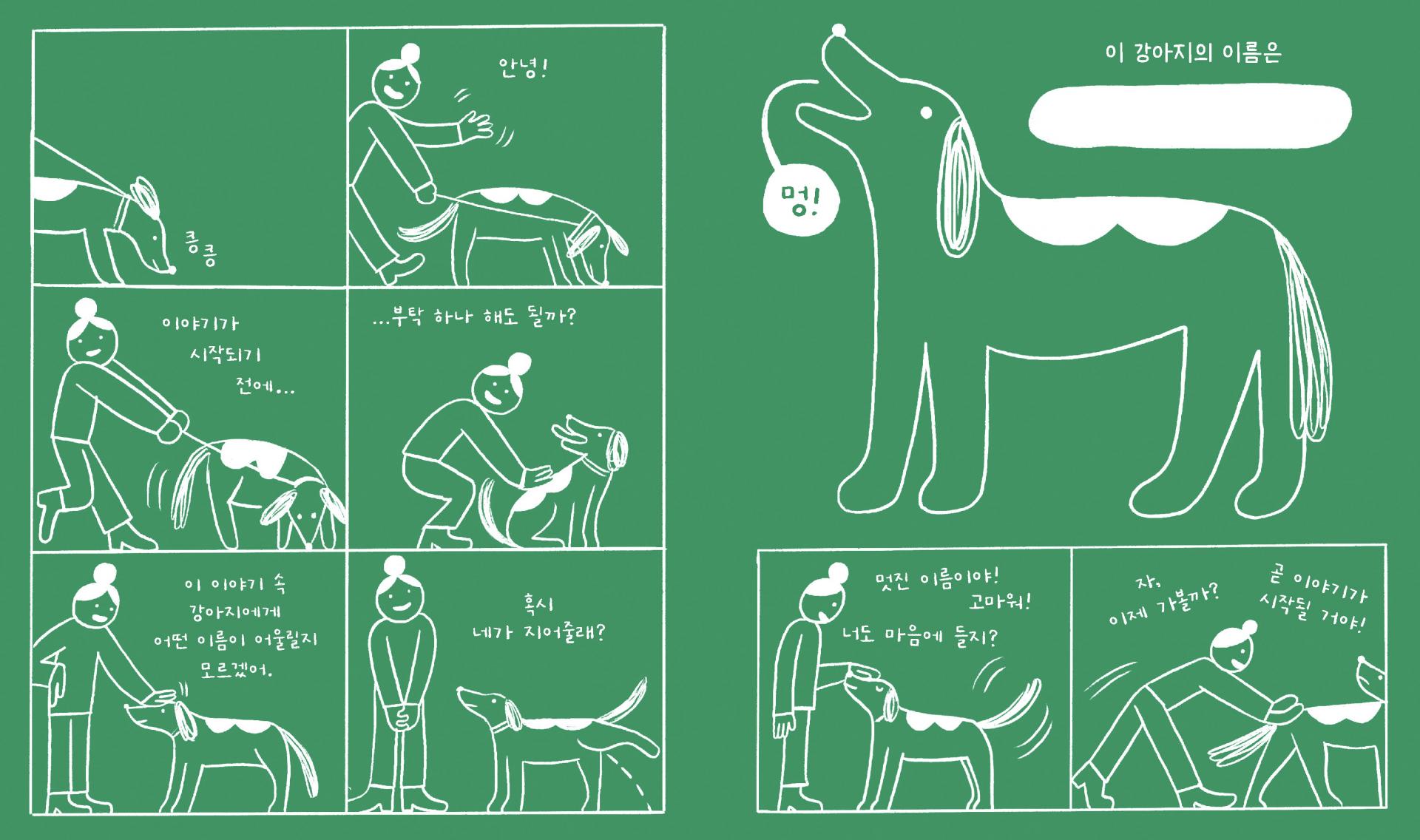 최근 국내에서 18만 관객을 돌파하며 흥행에 성공한 애니메이션 영화 <플로우>는 동물의 소리와 움직임이 만들어내는 서사와 흡입력을 보여주었다. 그리고, 그림책 『멍멍』 역시 한 소녀와 강아지가 소리와 움직임으로 교감하며 만들어 나가는 이야기를 통해 독자들에게 따듯한 재미와 즐거움을 선사한다.