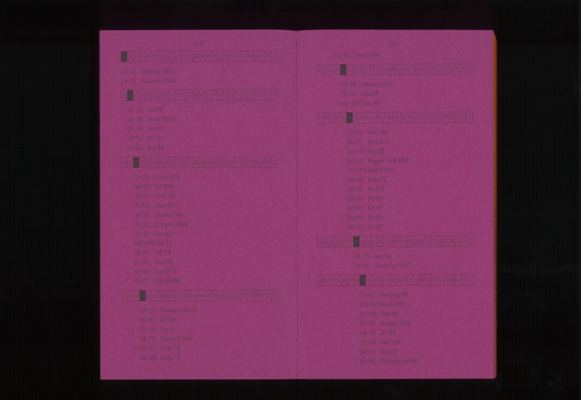 '팬그램'이란 라틴 알파벳의 경우 a-z까지, 한글의 경우 ㄱ-ㅎ까지 한 글자씩은 모두 포함한 한 문장을 의미합니다. 누타입은 재밌는 팬그램을 모아 «팬그램 북Pangram Book»을 제작해, 언어와 문자의 구조적 아름다움과 놀이, 학습으로서의 가능성을 동시에 탐색하고자 합니다. 이 책은 독자에게 친숙한 ‘동물’을 키워드로 한 팬그램 문장을 제작하고, 이에 어울리는 삽화를 함께 배치하는 방식으로 구성되어 있습니다.
