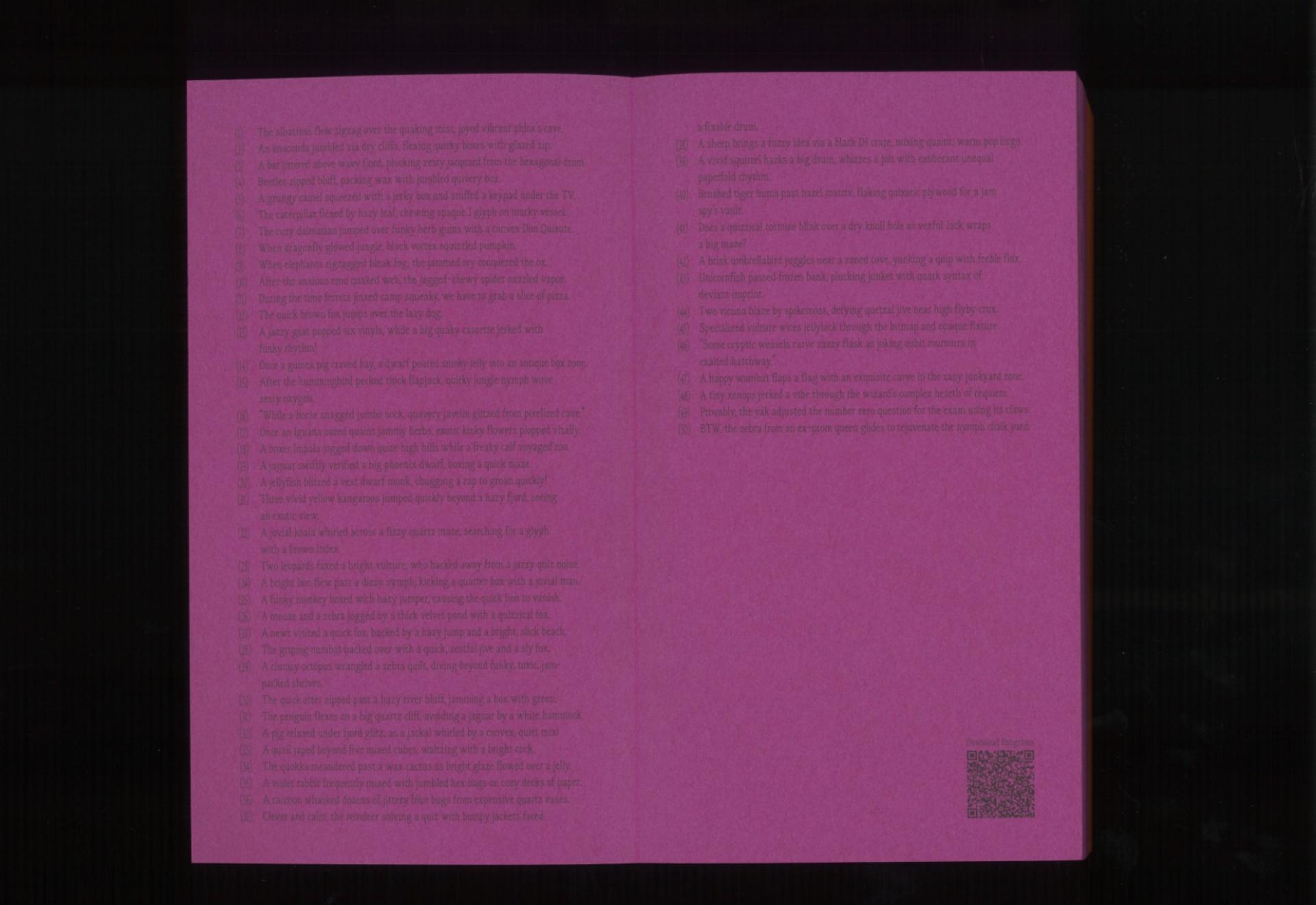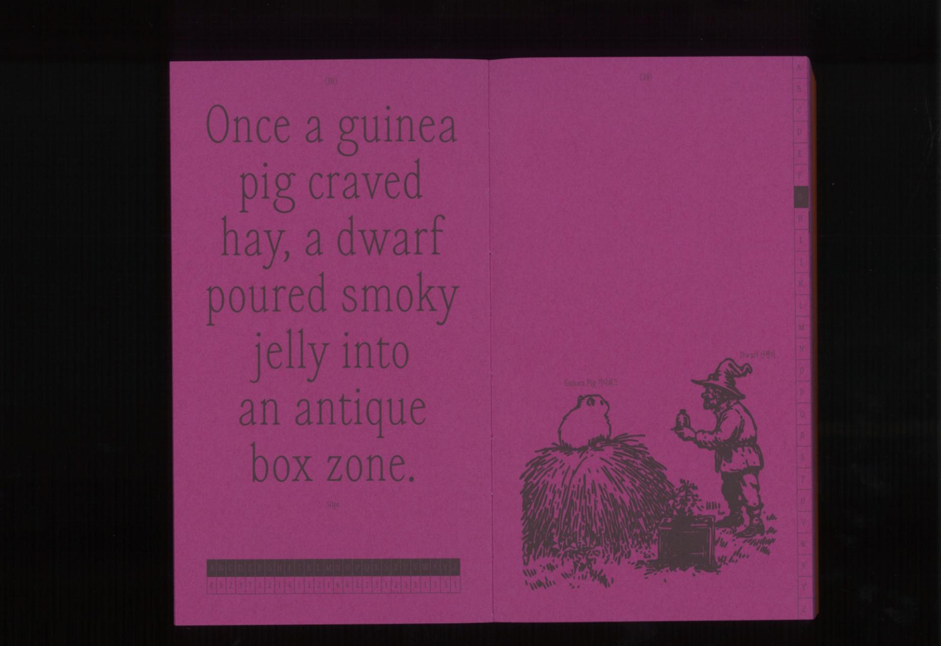 조형적 언어, 팬그램이 만들어내는 낯선 문장들 타입 디자이너에게 팬그램은 도구에 가깝다. 글자의 조형과 균형을 점검하고, 때로는 매대에서 마네킹의 역할을 수행해주기도 하는 기능적 문장이다. 팬그램은 가능한 짧은 길이에 문자의 모든(혹은 대표적인) 자소를 포함하는 경제적인 특징 덕분에 폰트의 조형을 한눈에 빠르게 확인할 수 있다. 즉, 팬그램은 의미를 전달하는 문장이라기보다는 형태를 드러내기 위해 존재하는, 조형 중심 언어라 볼 수 있다.