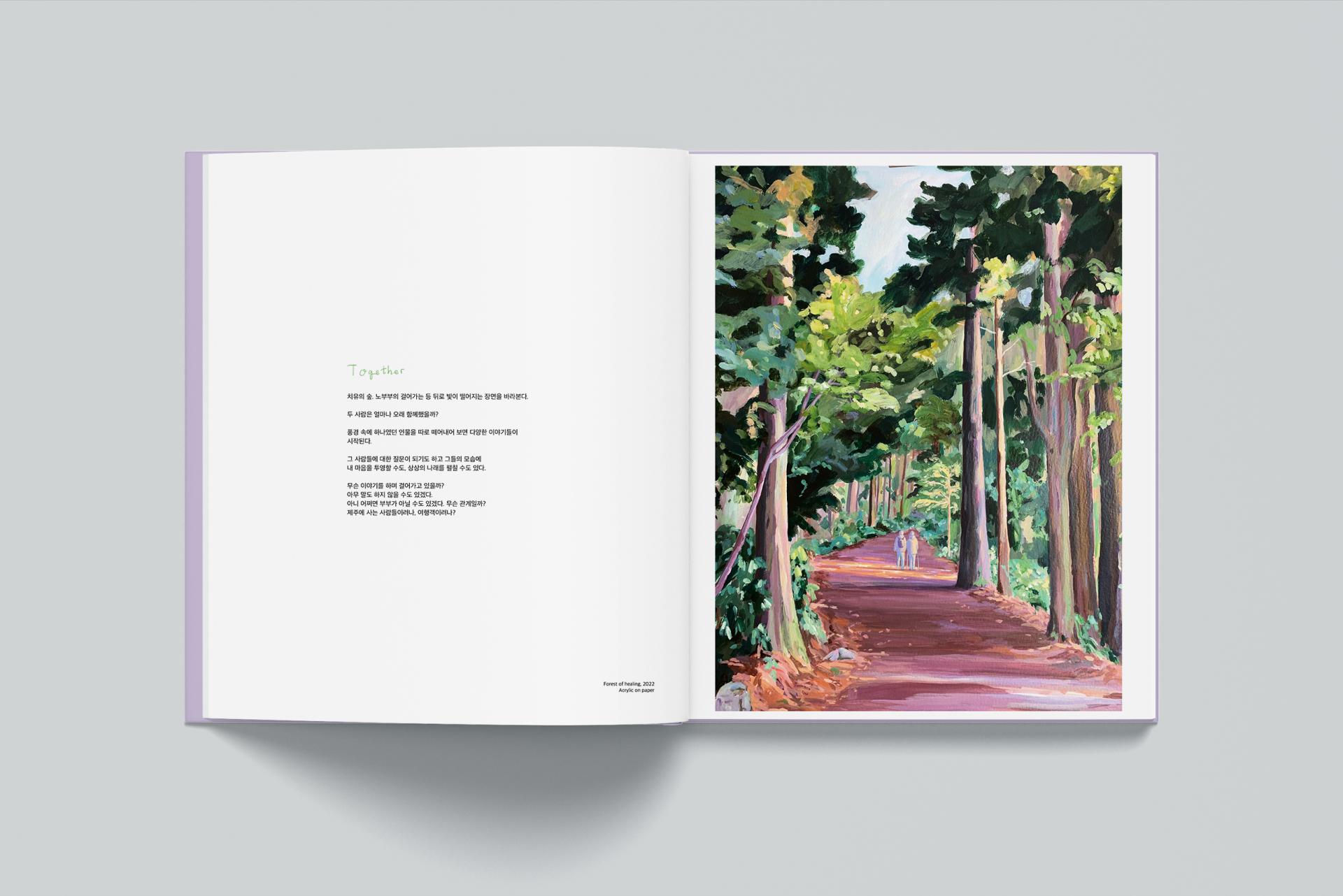 평안을 얻고 싶을 때마다 향했던 제주에서 보고 수집했던 장면들을 엮은 화집입니다. 코로나로 인해 자유롭게 여행을 다닐 수 없던 기간 동안 유일하게 갈 수 있었던 제주도 풍경에 이전보다 더 많은 관심을 갖게 되어 자연스럽게 작업을 하게 되었습니다. 제주는 한때 꼭 한 번 살아보고 싶은 곳이었지만 지금은 자연 속에서 어지러운 생각을 가라앉힐 수 있는, 평안을 얻고 싶을 때마다 갈 수 있는 마음의 피난처 같은 곳으로 두기로 했습니다. 그림과 함께 일기 형식의 짧은 글들이 수록되어 있습니다.