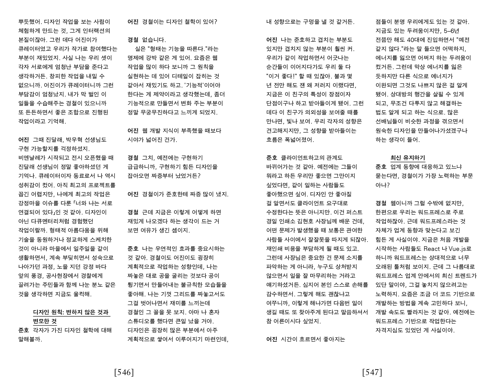 또한 다양한 창작자와 예술가와의 협업, 사회에서 발견된 문제의식에 대한 주체(구성원)로서의 발언, 현대미술의 방법론을 재해석하는 작업 등 의미에 부합하는 형식을탐구함으로써 디자인의 영역을 확장하는 실험을 진행해왔다.
