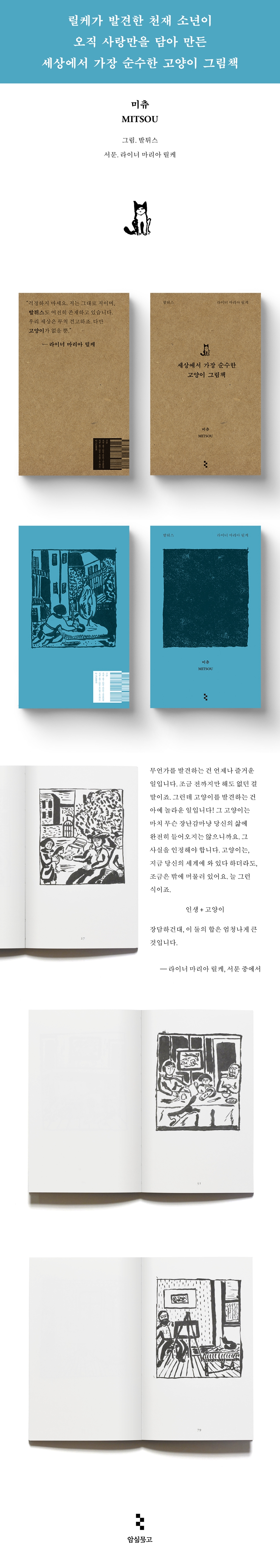 마치 언어로 주고받는 위로가 아무 소용이 없다는 걸 확인했다는 듯, 열두 살 소년이 그린 이 연작 드로잉에는 단 한 글자도 들어 있지 않다. 그러나 배경의 연속과 단절, 특정한 구도의 리드미컬한 변형으로 인해 독특한 운율이 느껴진다. 이 운율은 흐름으로 이어지고, 이 흐름은 결국 언어에 의존하지 않는 이야기가 된다. 사랑하는 고양이와의 만남부터 헤어짐까지, 발튀스가 말로는 도저히 설명할 수 없었던 기쁨과 슬픔이 그림 속에서 음악 선율처럼 흐른다.
