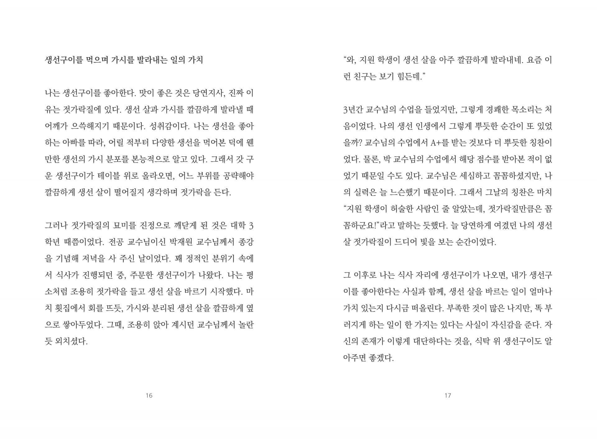 전공, 직업, 사회적 지위로는 다 담을 수 없는 ‘나’라는 사람을 알고 싶은 어른의 에세이. 내가 잘하는, 못하는, 자신 있는, 하고 싶지 않은, 고민과 생각, 그리고 노력들이 모여 행복한 나를 만든다.