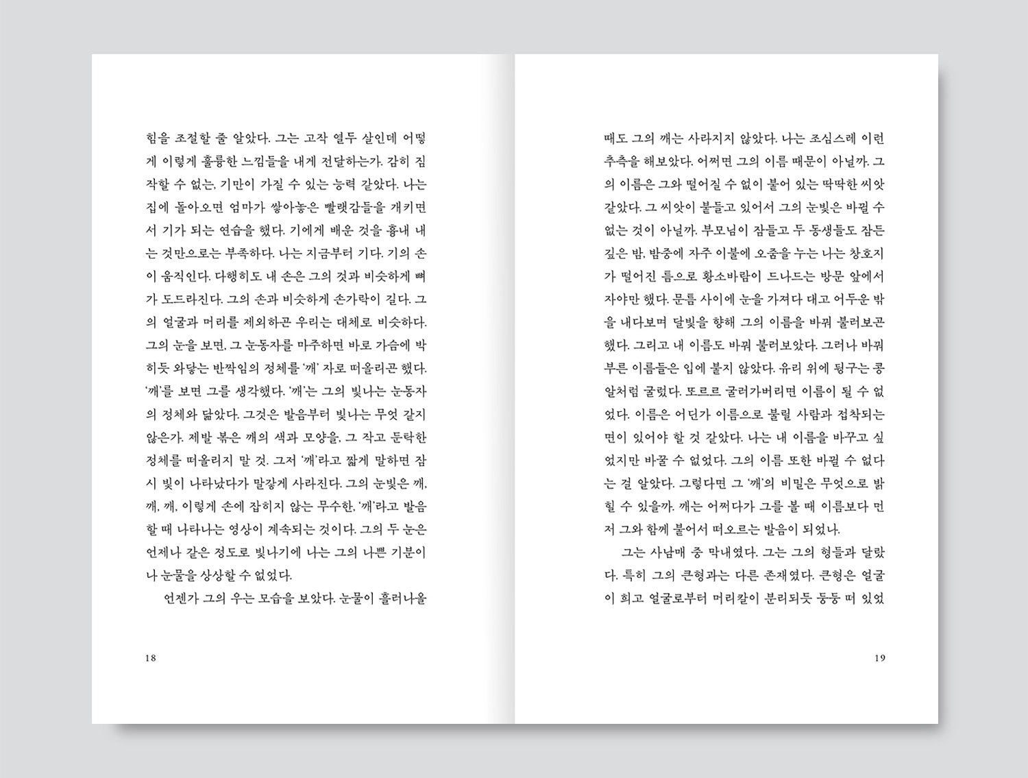 유년의 이야기는 필연적으로 슬픔을 동반한다. “슬픈 이야기만 쓰고 싶다고 생각한 것은 슬픔이 살이 벗겨진 자리처럼 아픈 곳을 자꾸 알려주고 보여주기 때문인 것 같다.”는 작가는 “이해할 수 없는 일들의 연속에서 아픈 자리를 더듬어야만 아프구나 아프구나 결국 말하게 될 것이고, 결국 당신의 얼굴을 잊지 않을 것”임을 알고 있다.