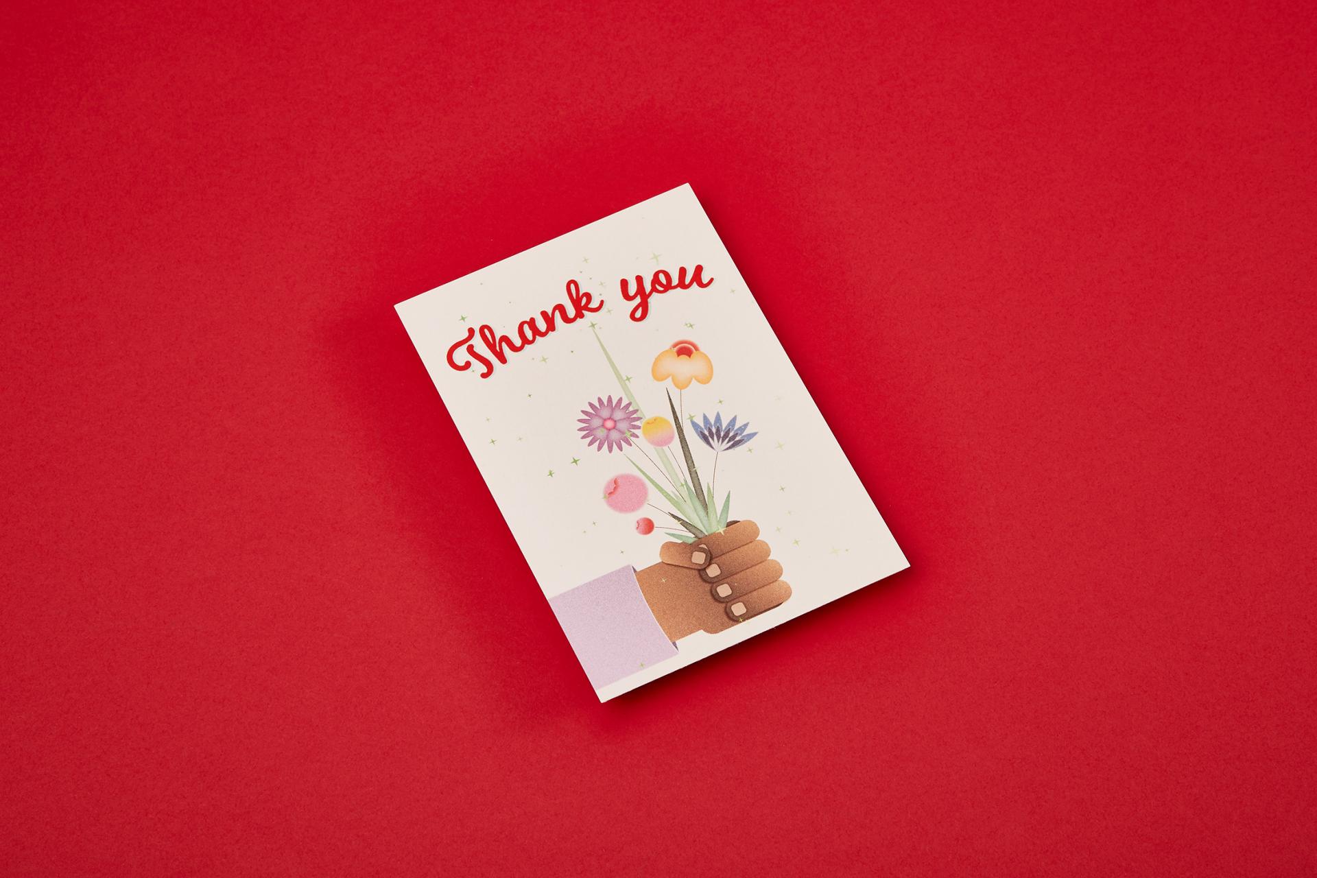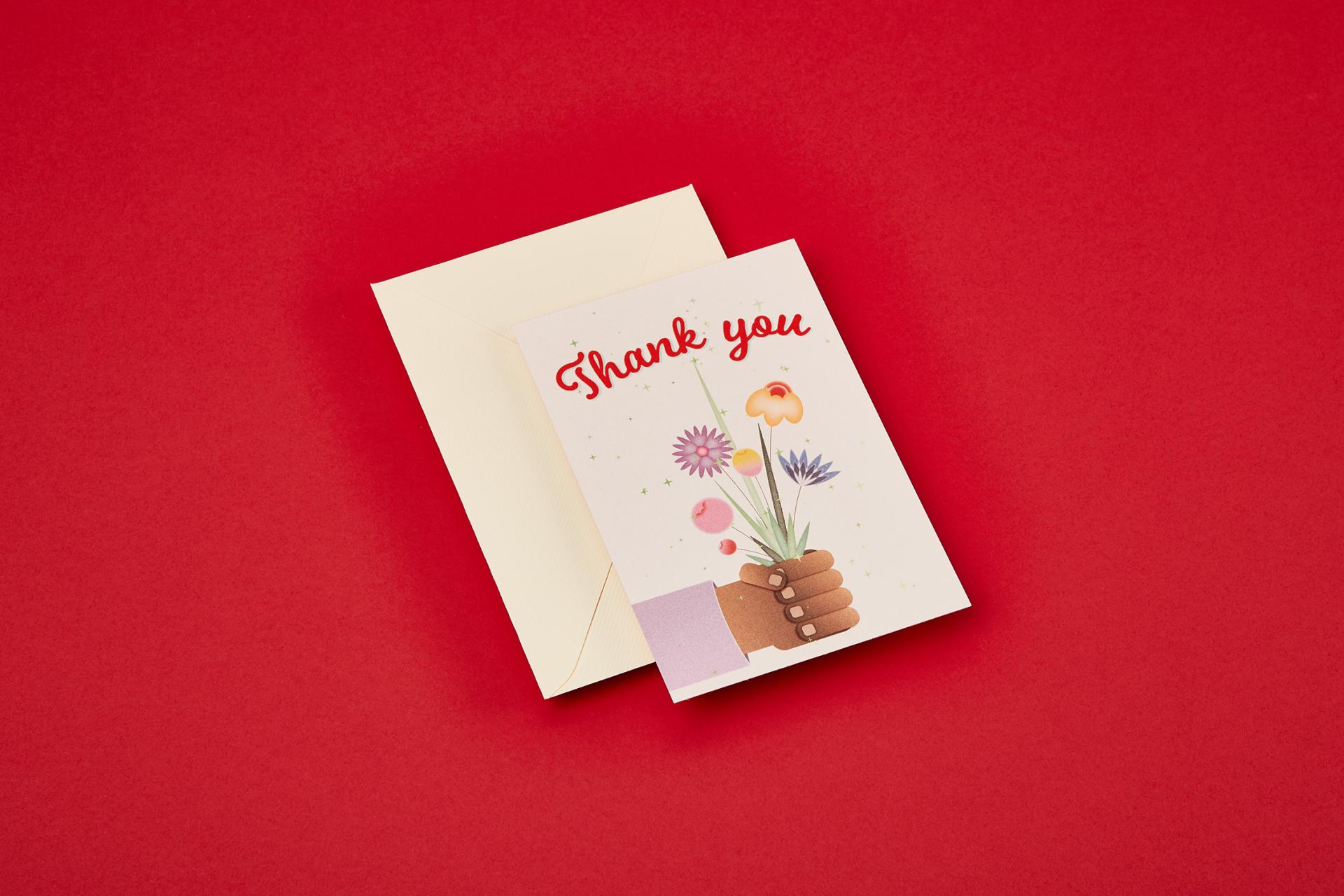 특별한 날, 소중한 상대에게 마음을 전하기에 좋은 엽서입니다. 다채로운 꽃을 들고 있는 일러스트 엽서 1장과 봉투 1장이 한 세트로 구성되어 있습니다.