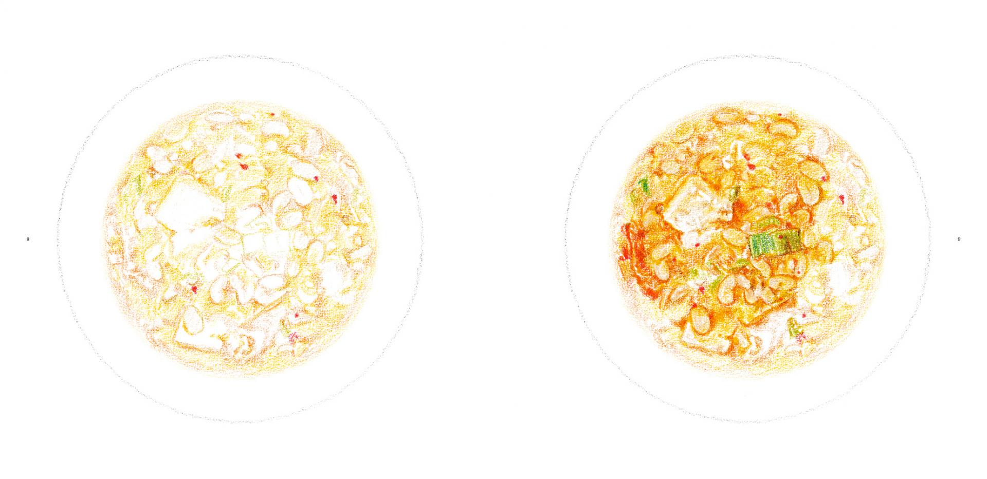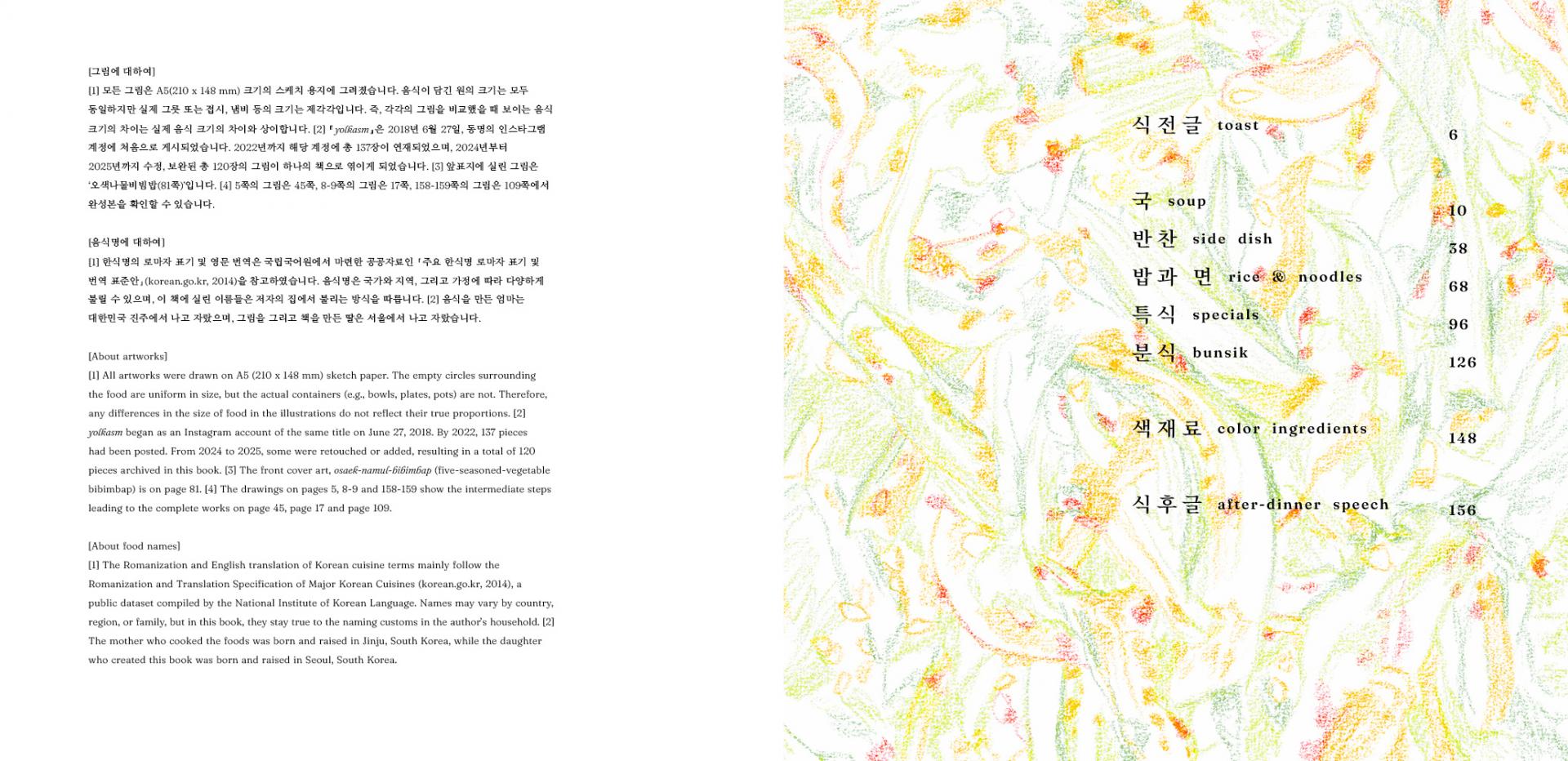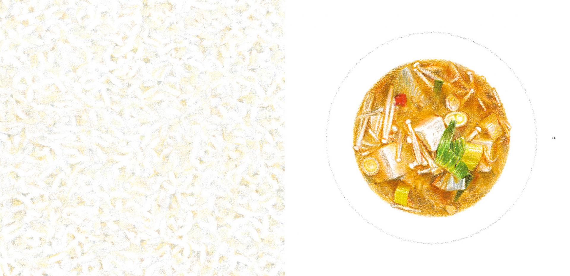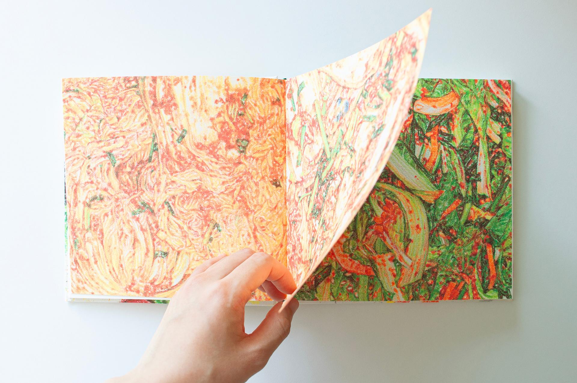 그림을 보면, 실제로는 존재하지 않는 소리를 듣고 냄새를 맡게 됩니다. … 나아가 종이를 한 술 뜰 수 있을 것만 같은 이상한 기분이 들 것입니다. 그러한 경험을 더 많은 사람들과 나누고자 이 책을 만들었습니다. (식전글, 6p)