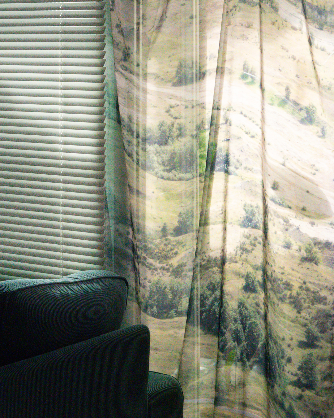 빛이 잘 드는 소재이지만 촘촘히 짜여진 원단 덕분에 부드러운 빛을 즐기기에 충분해요. 안락한 공간에 걸어두고 커다란 숲의 공기를 느껴보세요.