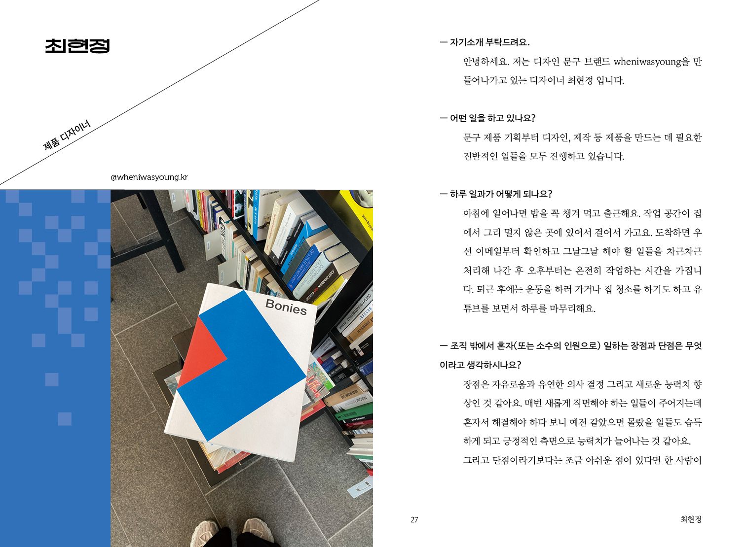 최현정 제품 디자이너 @wheniwasyoung.kr