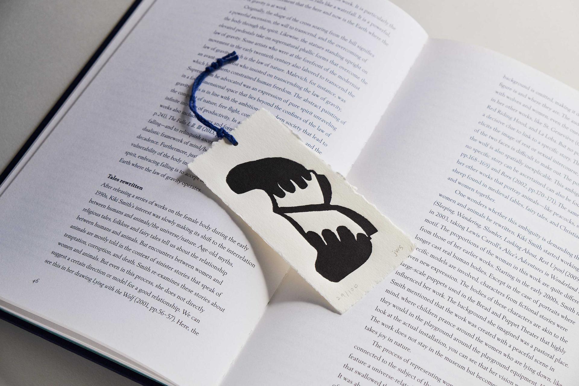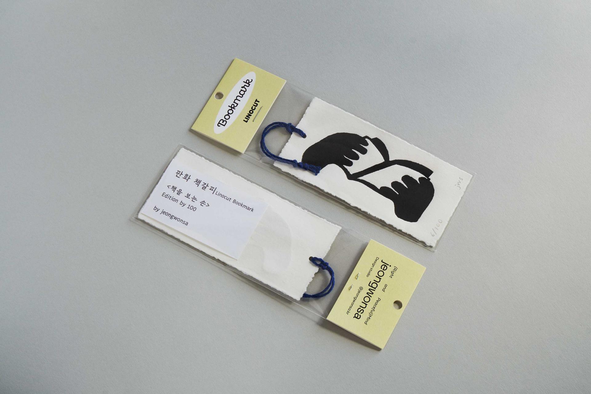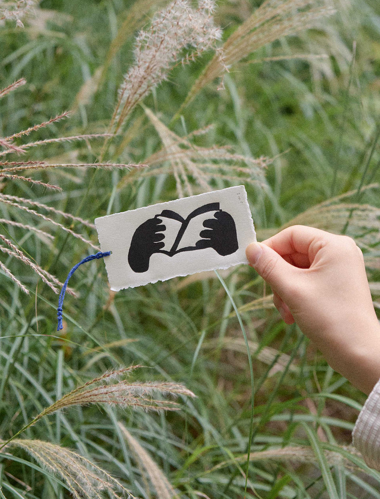 판화 책갈피는 큰 크기의 판화지를 한 장, 한 장 물에 불린 뒤 책갈피 크기로 재단하는 것부터 시작합니다. 리놀륨 판을 제작해 잉크를 바르고 준비한 종이 위에 한 장씩 찍는 과정을 반복해 만듭니다. 책갈피의 끝에는 작은 구멍을 내어 두 가지 종류의 매듭을 만들어 단단하게 고정합니다. 종이 재단부터 마지막 매듭까지 모든 과정을 손으로 제작하는 시리즈입니다.