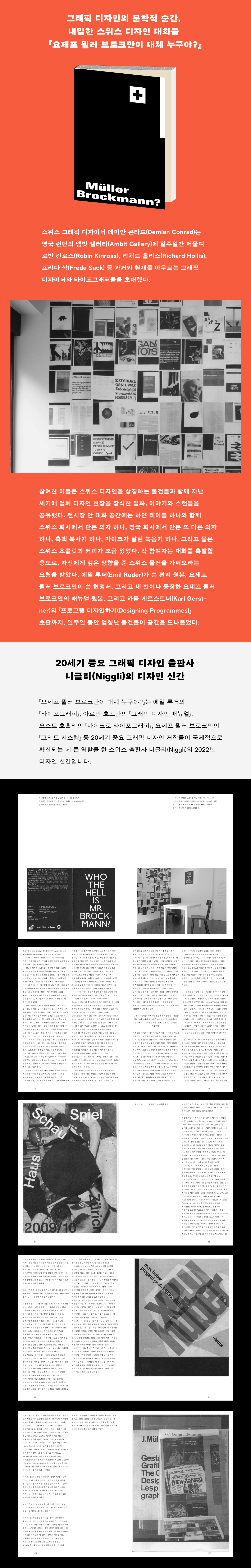 『요제프 뮐러 브로크만이 대체 누구야?』는 에밀 루더의 『타이포그래피』, 아르민 호프만의 『그래픽 디자인 매뉴얼』, 요스트 호훌리의 『마이크로 타이포그래피』, 요제프 뮐러 브로크만의 『그리드 시스템』 등 20세기 중요 그래픽 디자인 저작물이 국제적으로 확산되는 데 큰 역할을 한 스위스 출판사 니글리(Niggli)의 2022년 디자인 신간이다.