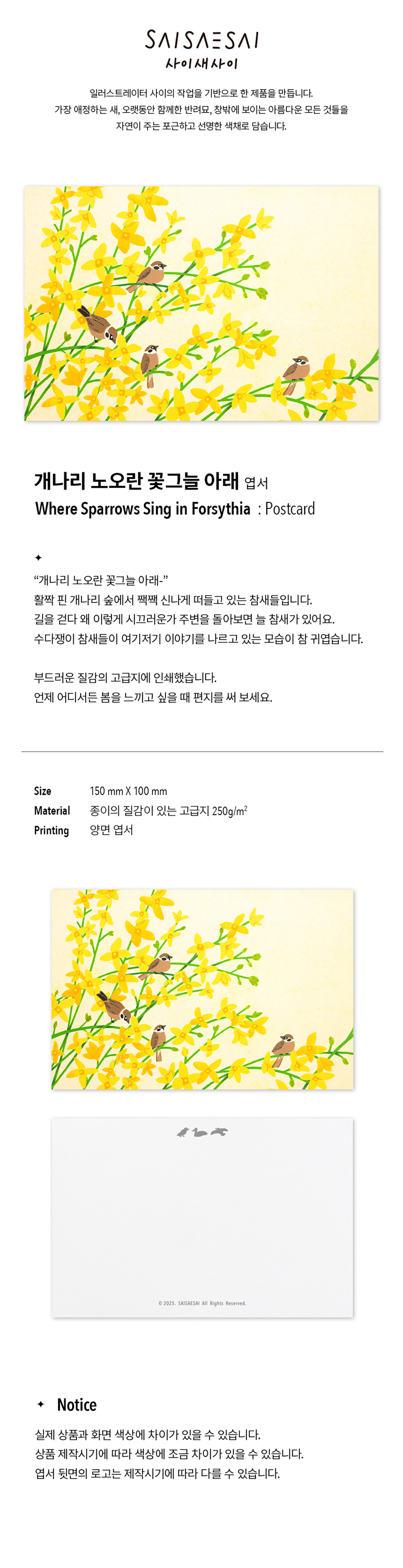 개나리 노오란 꽃그늘 아래 엽서 (사이새사이)