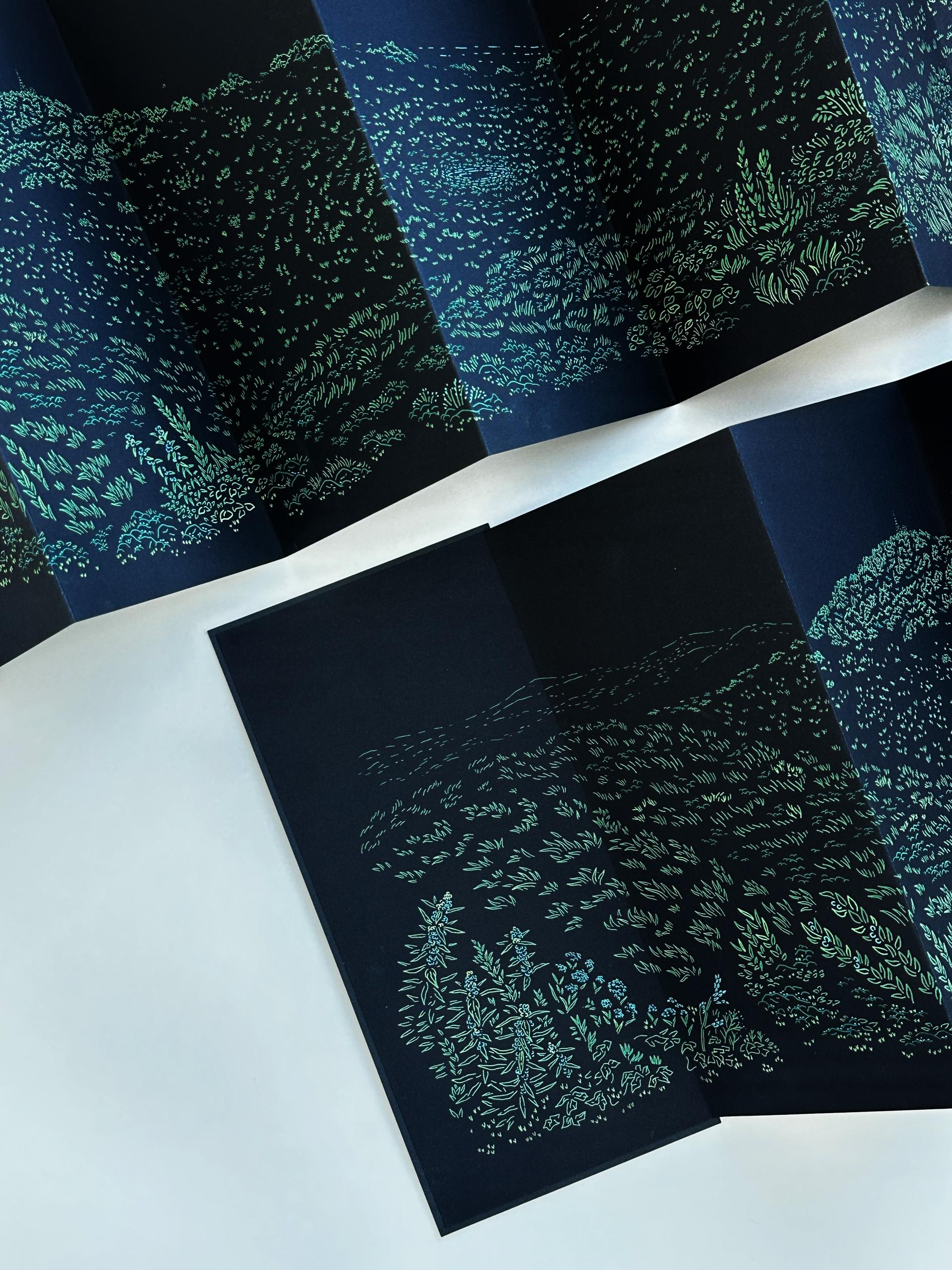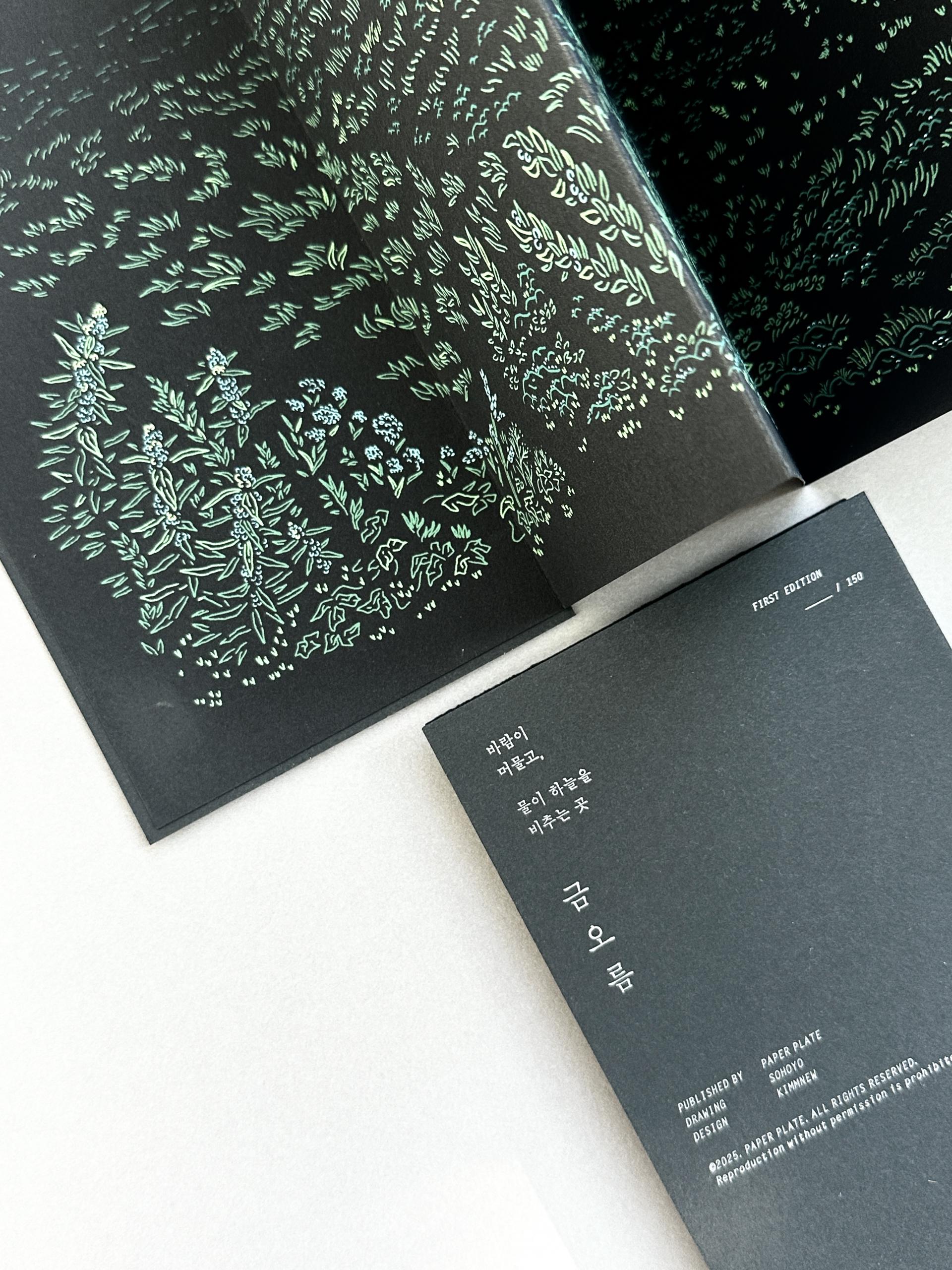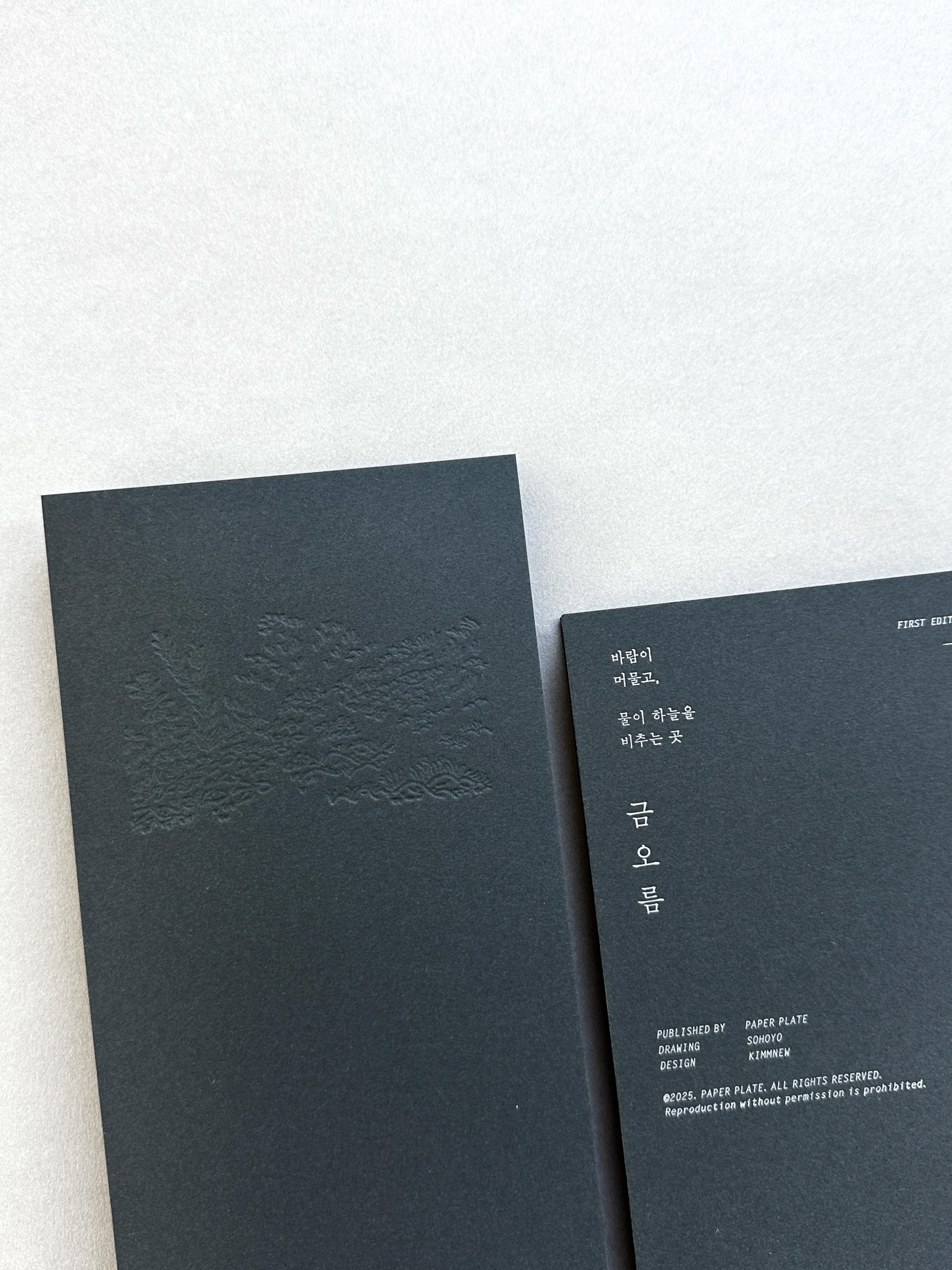 제주 금오름의 전경을 담은 드로잉 아트북입니다. 8단 접지로 제본한 아코디언북 형식이며, 내지는 실크스크린 5도로 인쇄하였고, 표지는 레터프레스로 인쇄하였습니다.