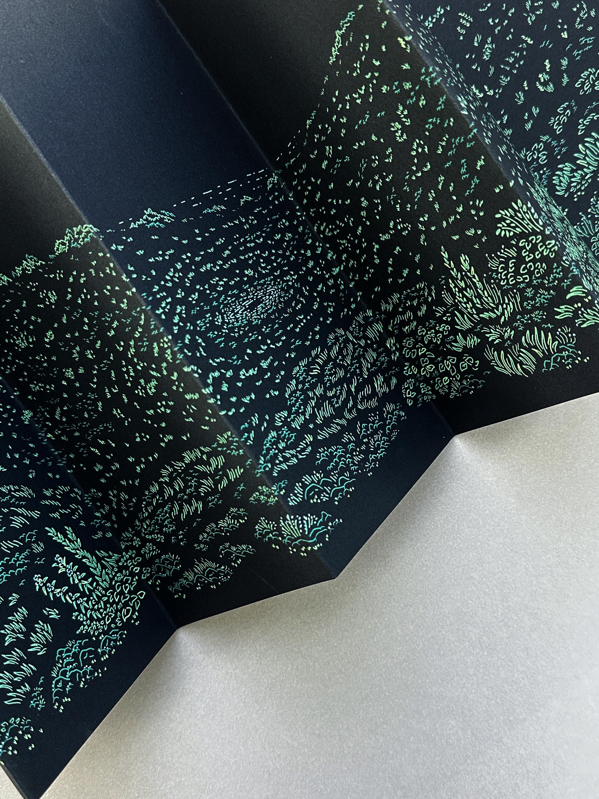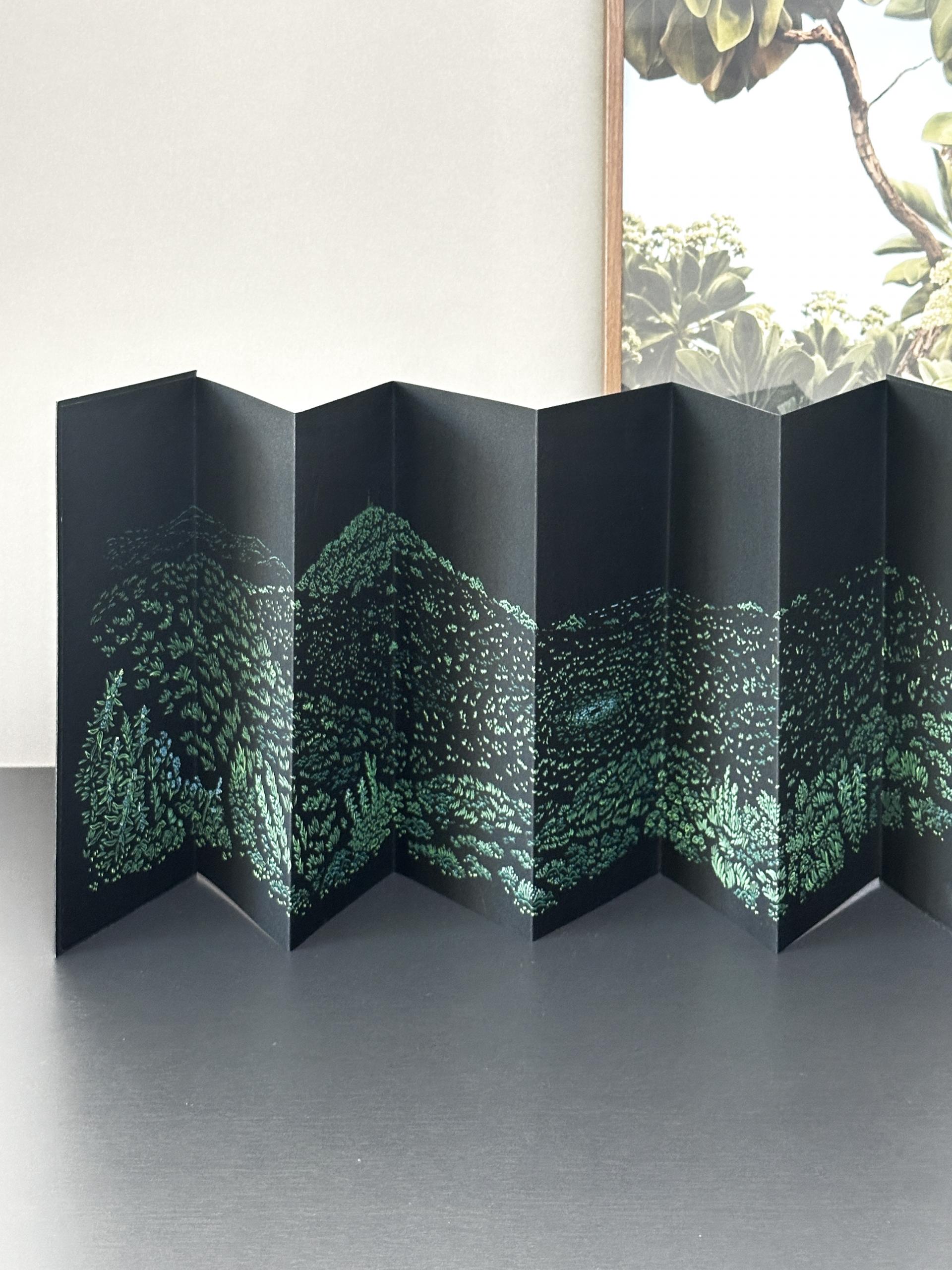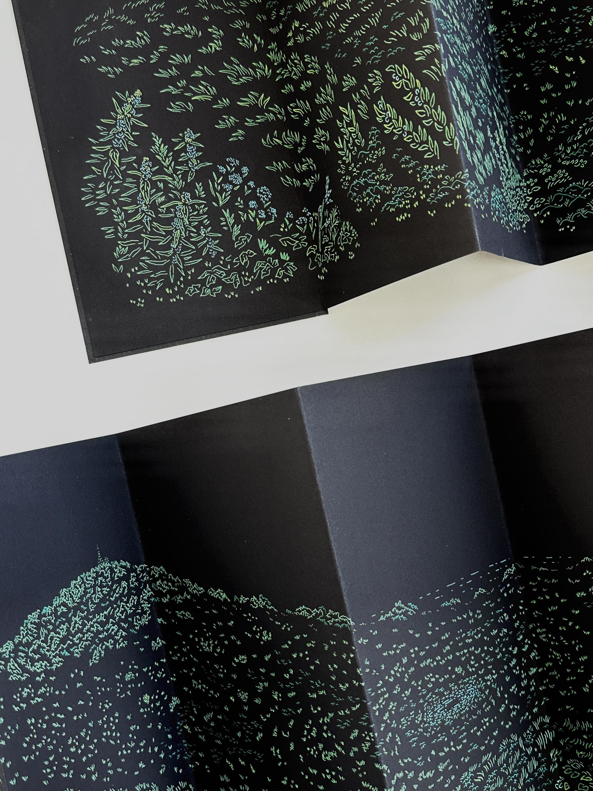 제주 금오름의 전경을 담은 드로잉 아트북입니다. 8단 접지로 제본한 아코디언북 형식이며, 내지는 실크스크린 5도로 인쇄하였고, 표지는 레터프레스로 인쇄하였습니다.