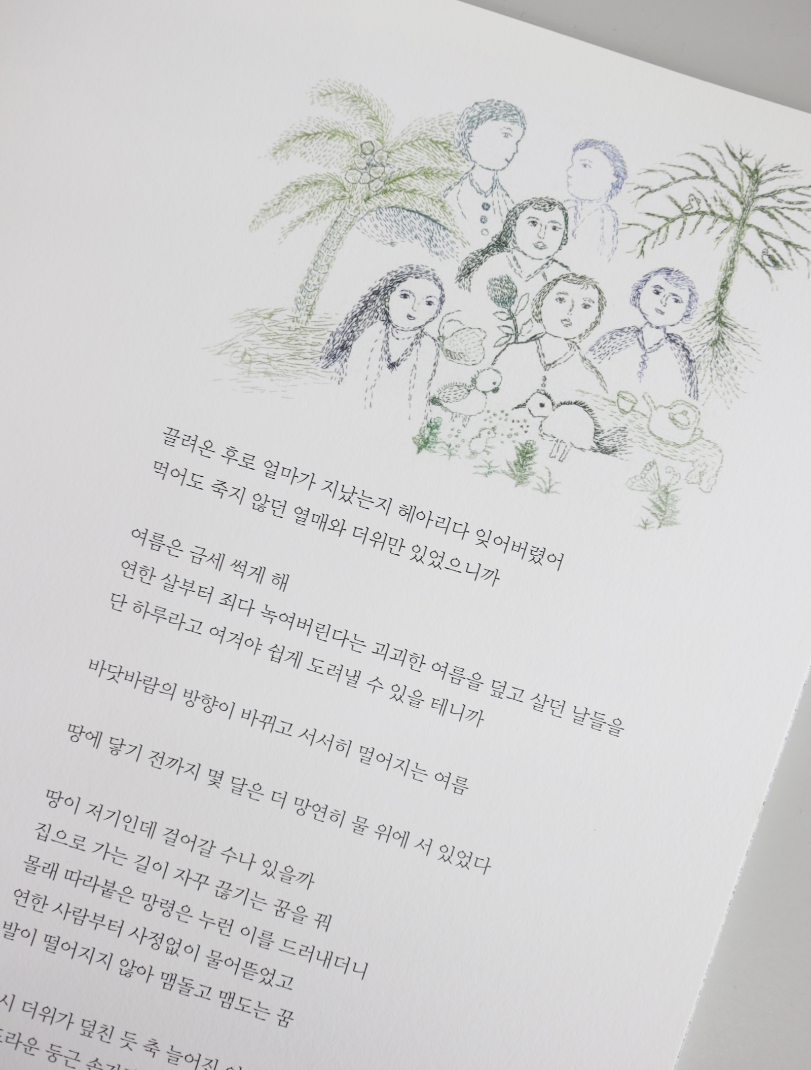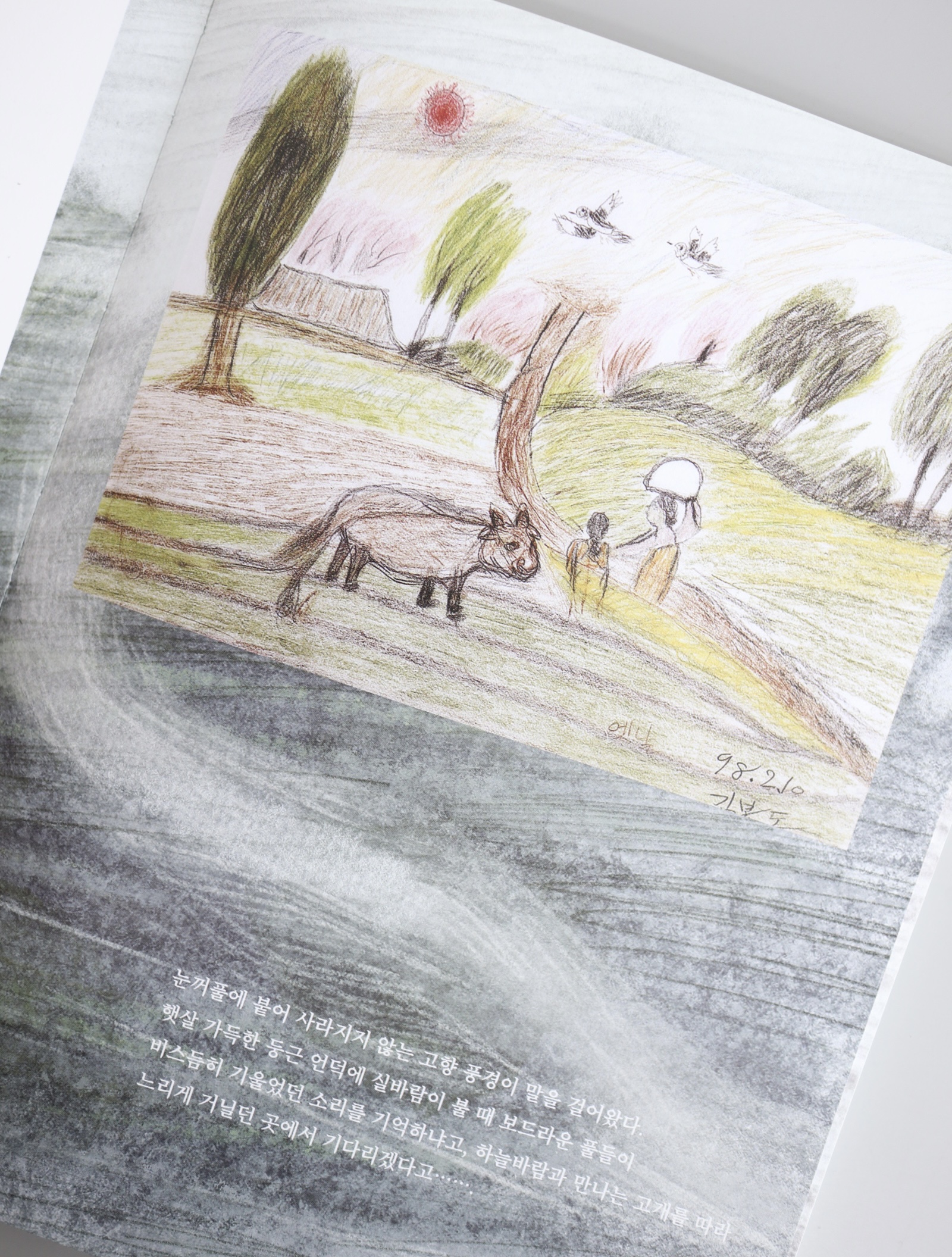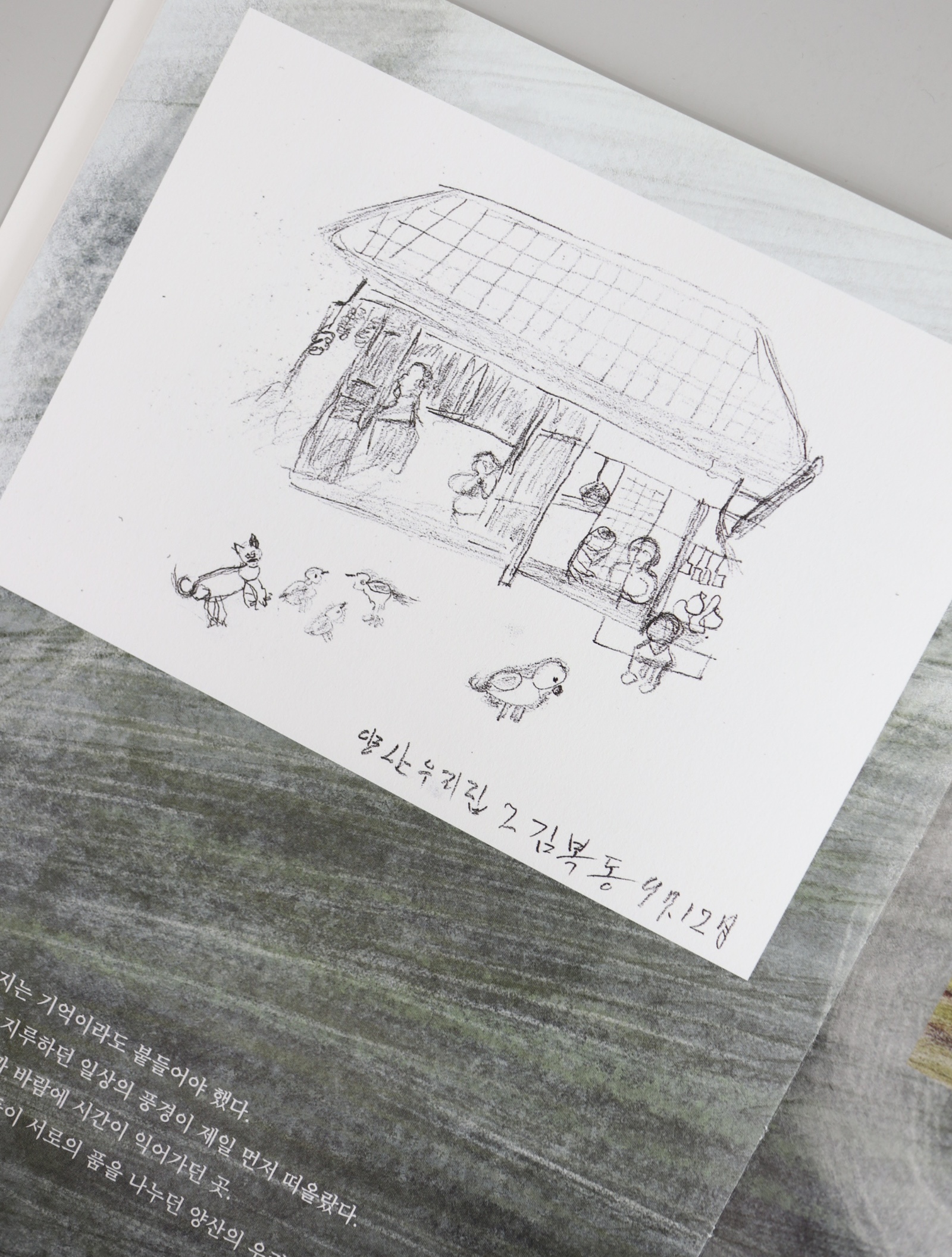 마치 헝클어진 타래에서 실낱 하나를 끄집어 올리듯, 김지현은 그림에 새겨진 김복동의 기억과 감정의 흔적들을 그림과 시의 언어로 표현했다. 조심스럽지만 적극적으로 그 그림들의 뒤를 잇듯 그리고, 또 이어서 썼다. 역사적 기록물로서 일본군 ‘위안부’ 피해사실을 열거하기보다, 김복동이 일상 속에서 만났을 풍경과 사람, 마음 속 이야기를 풀어내는 작업에 집중했다. 삶에 대한 의지와 번민, 그저 평범한 생을 살고 싶은 한 사람으로서의 내면 풍경을 김복동의 그림에서 찾아 풀어냄으로써, 김복동의 일상이 어디에나 있는 우리 이웃의 일상처럼 독자의 삶 곁에 머무를 수 있었으면 하는 바람을 담았다. 나아가 작가는 이제 고인이 되어 마주할 수 없는 분들을 우리가 어떻게 기억하고 그 기억을 이어갈 수 있을지를 고민하며 질문하고 있기도 하다.