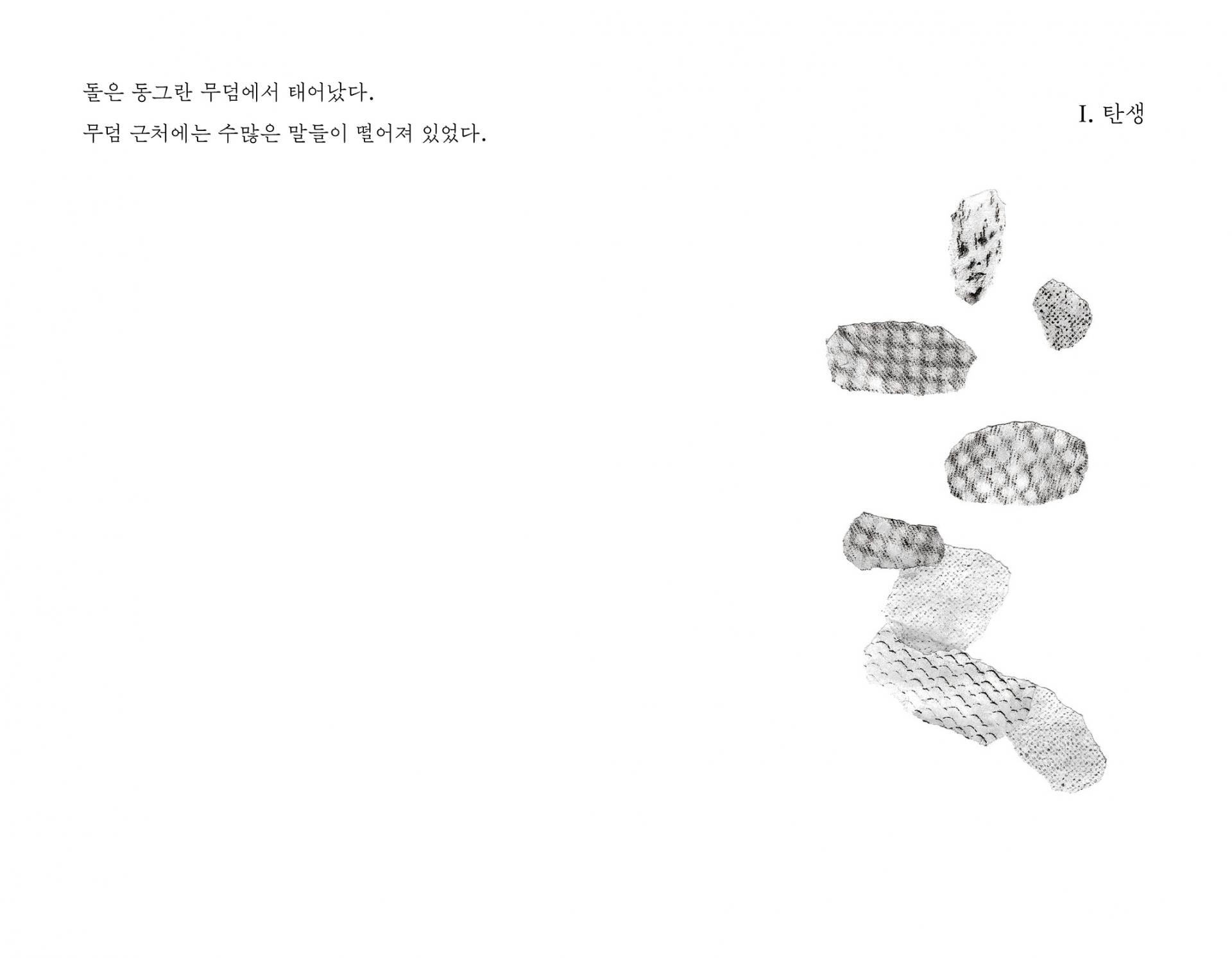 p.4 돌은 동그란 무덤에서 태어났다. 무덤 근처에는 수많은 말들이 떨어져 있었다.
