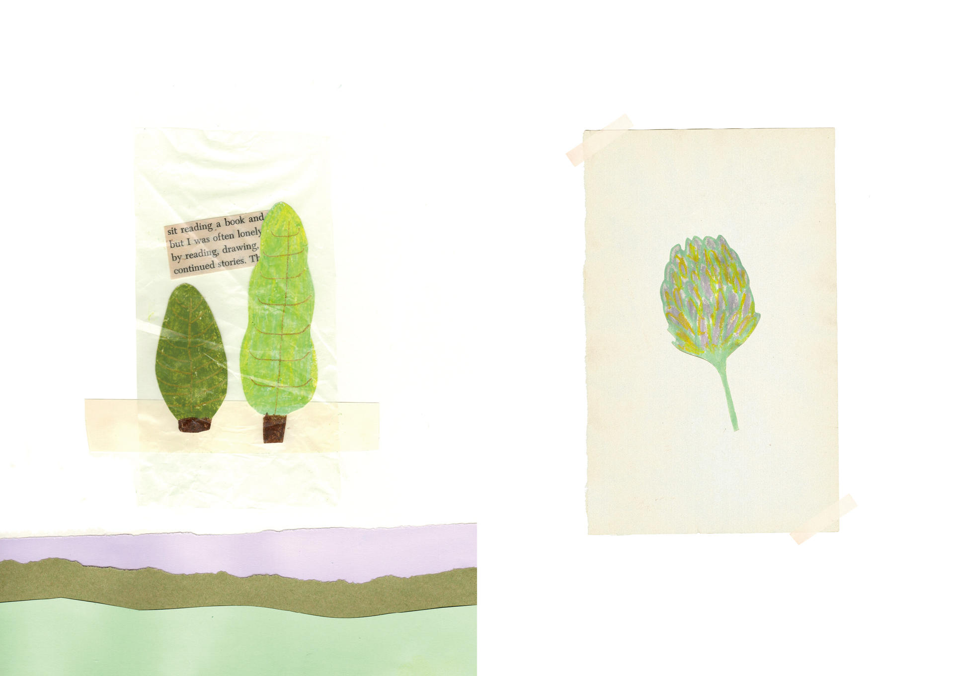 흙색의 나뭇잎과 뿌리, 여름의 시작을 알리는 초록색의 열매까지, 자르고 붙이고 그린 것들을 모아 책으로 엮었습니다. 겨울에서 봄은 어김없이 찾아오고 탄탄한 열매를 맺는 여름도 곧 오겠지요.