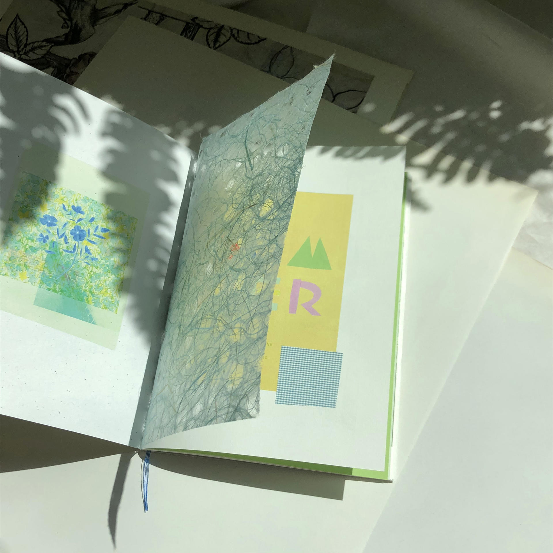 -여름에 잘 어울리는 파란색의 실로 직접 제본해 만들었습니다.