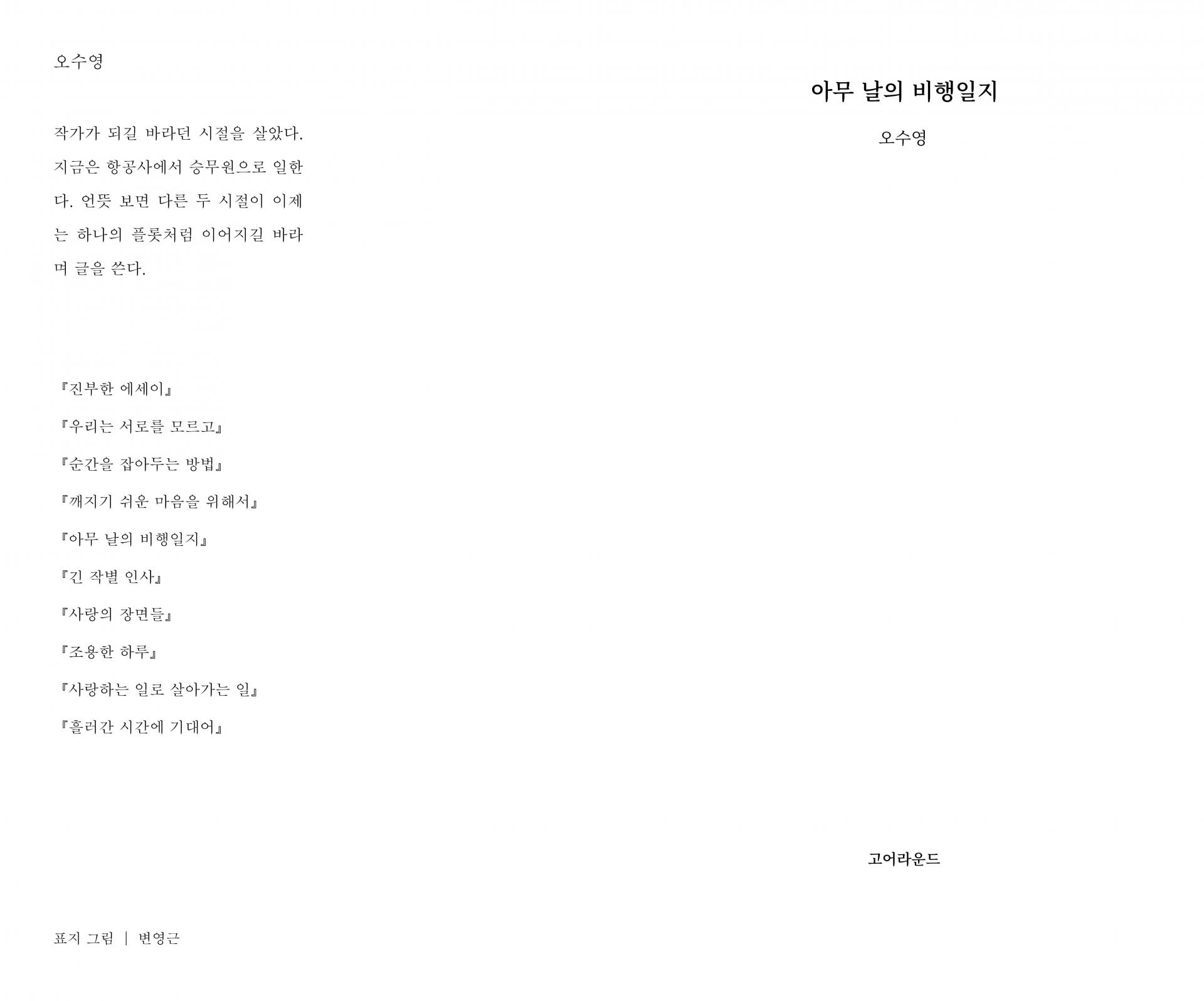 “비행이라는 생업과 글쓰기라는 꿈, 그 경계에서 나만의 고유한 균형을 찾아가는 일.”