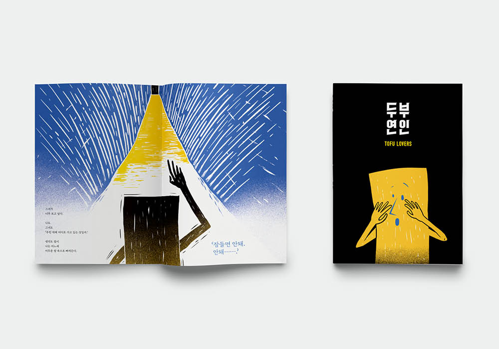 어느 날 우리는 변했고, 서로를 안고 싶을 때조차 그럴 수 없는 존재임을 깨달았다. 안을 수 없어도 상관없다는 생각이 들 때쯤 우리는 각자의 노란색 방으로 흩어져 그대로 이별했다. 콩이 두부가 되어 모판에 담기고, 다시 검은 비닐봉지에 담겨 누군가의 집으로 간 두부연인.